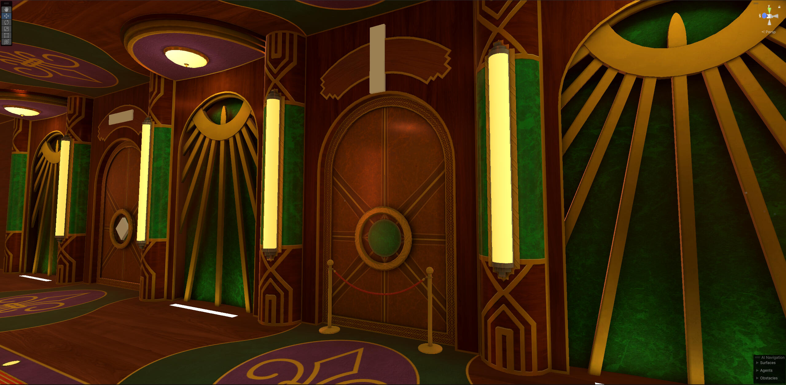 | To expand the environment efficiently, the VIP hallways were built using repurposed assets. By leveraging mesh and material batching, I was able to add these engaging new spaces with minimal performance impact—extending the world without compromising the frame rate. |